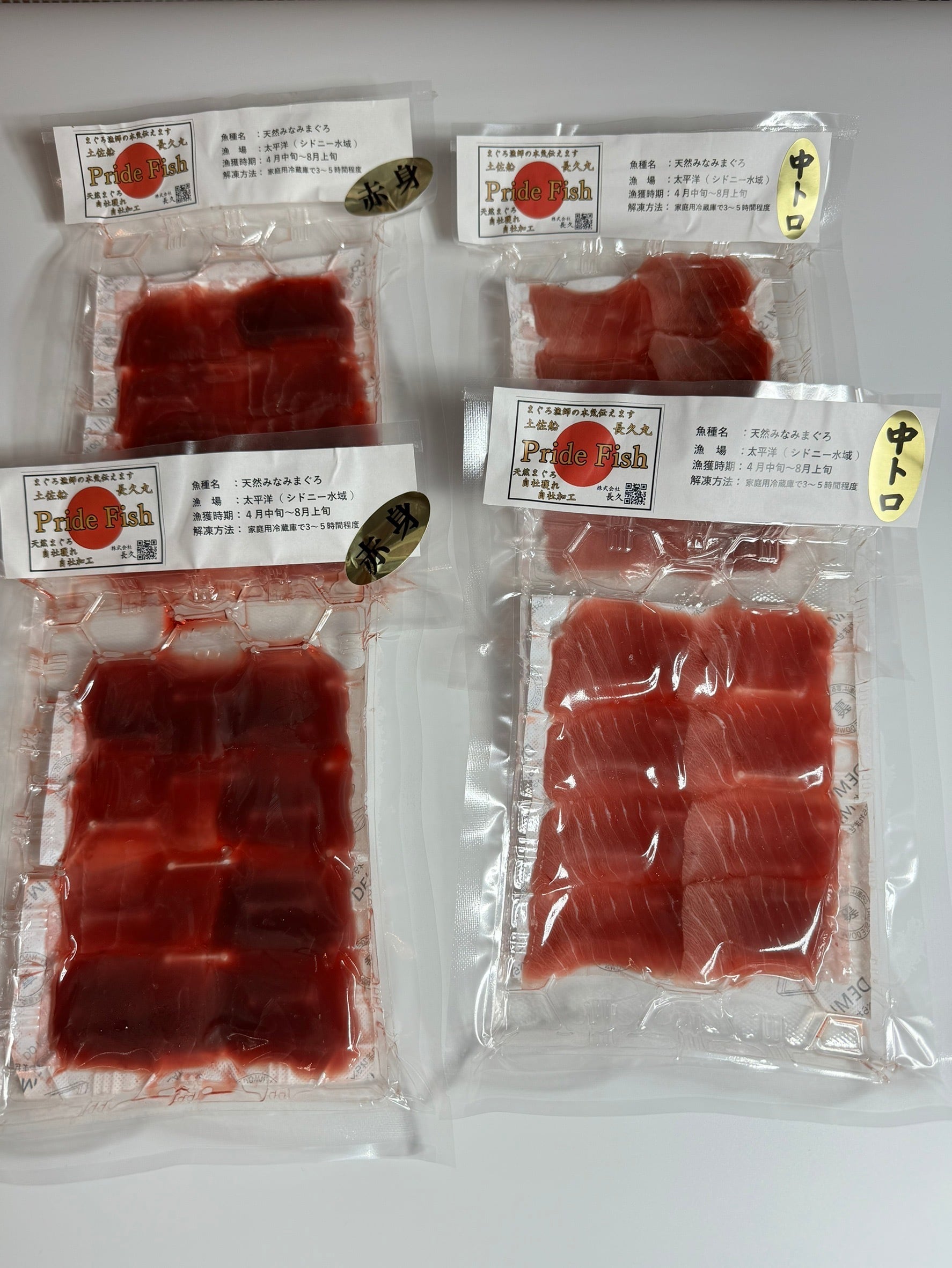 新鮮なミナミマグロの赤身と中トロが各200gずつセットになった贅沢な商品をご用意しました!自宅で簡単に本格的な寿司や刺身を楽しむことができ、豊潤なマグロの味わいを堪能できる特別な一品です。ぜひ新しい美味しさをご体験ください!